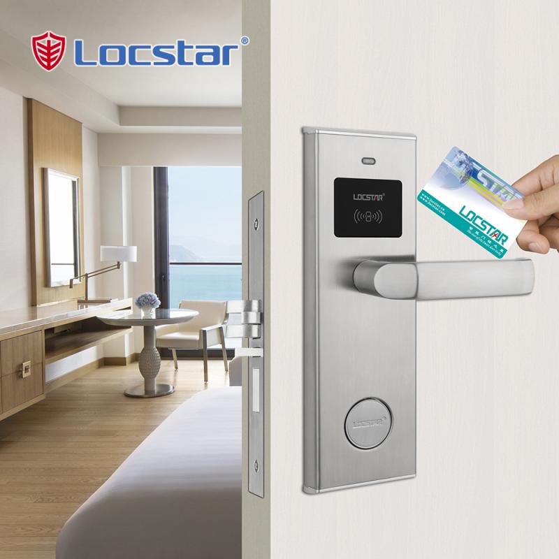 Zamek hotelowy LCOSTAR (LS-8002), można odblokować za pomocą karty i klucza mechanicznego. Obsługuje różne stopnie autoryzacji, takie jak karta budynku, karta piętra, karta pokojówki, karta konserwatora, karta recepcji i tak dalej. Dostarczamy również pełny zestaw akcesoriów.