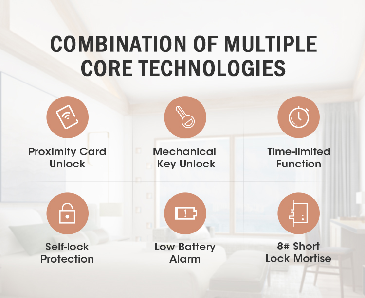 9. Różne stopnie autoryzacji: obsługa 14 typów kart, w tym karta do ustawiania numeru pokoju, karta główna, karta awaryjna, karta piętra, karta budynku, karta gościa, karta tymczasowa, karta alarmowa, karta nie przeszkadzać itp.