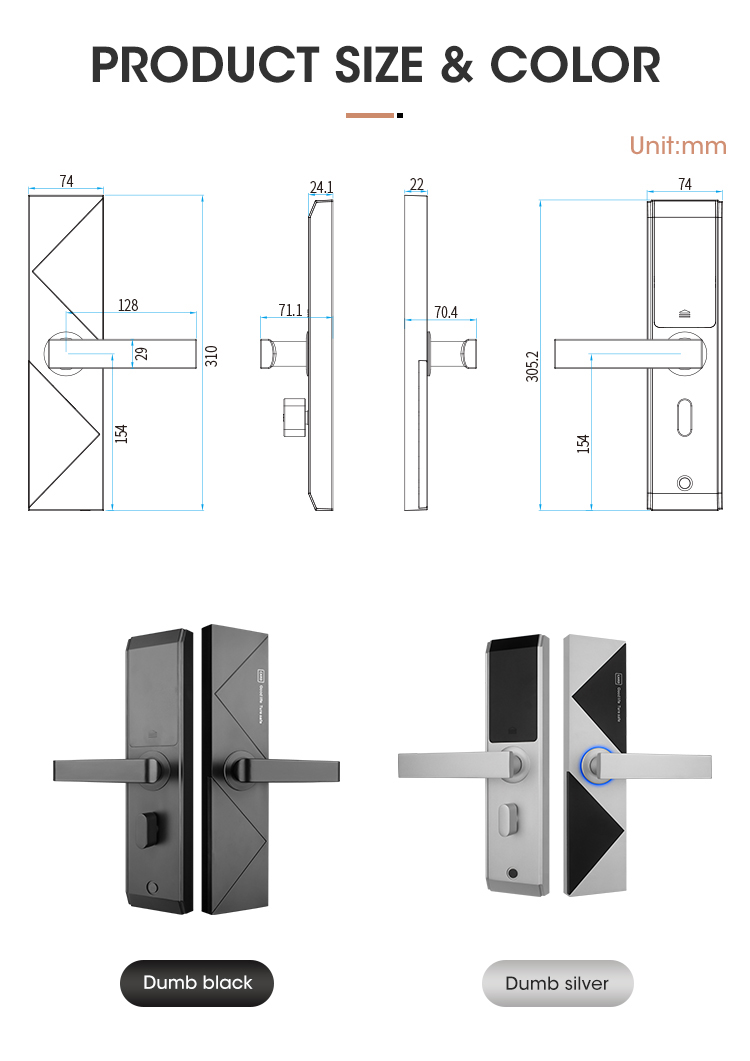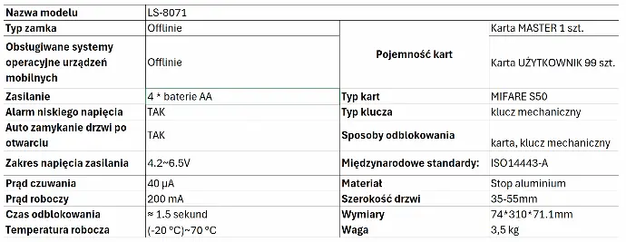 Zamek LS-8071 ma bardzo nowoczesny designe oraz jest wykonany z wysokiej jakości aluminium. LS-8071 można odblokować za pomocą karty oraz klucza mechanicznego w sytuacjach awaryjnych.