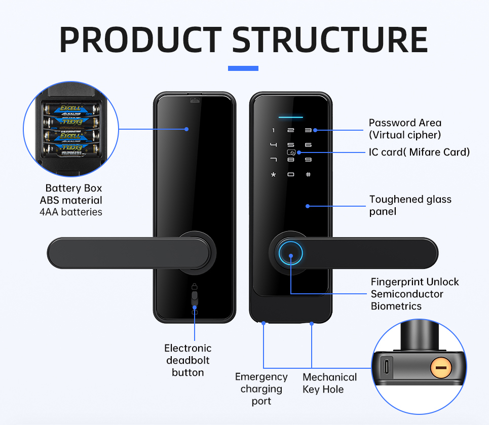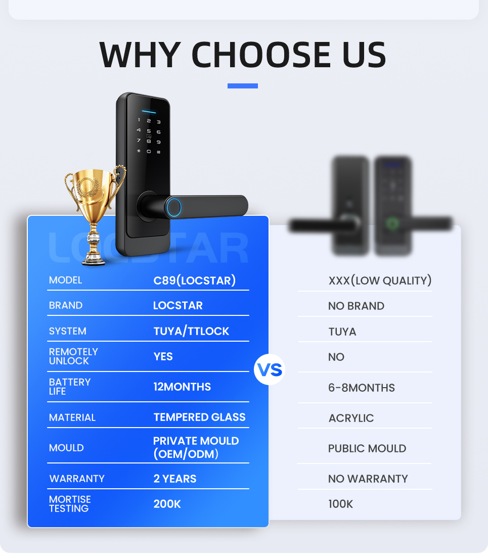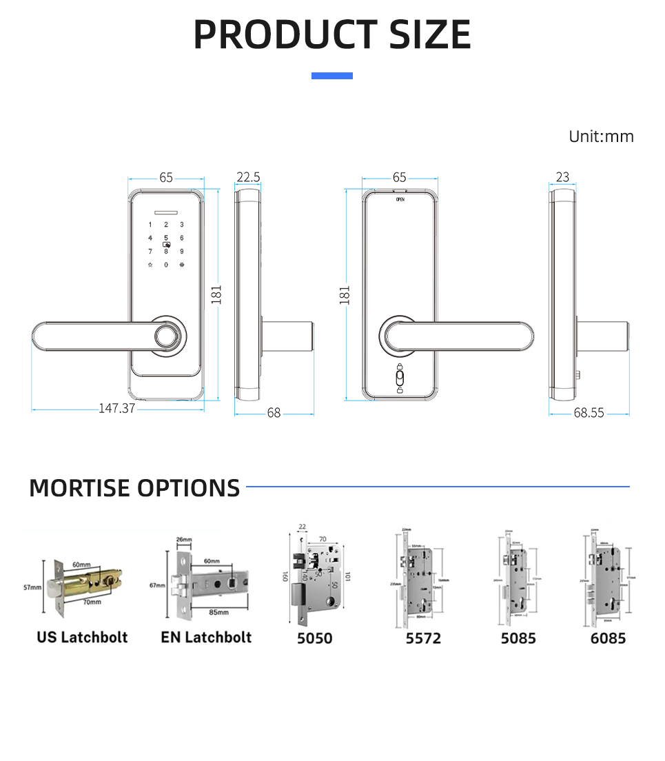 LS-C89 to zamek współpracujący z systemami smart TUYA i TTlock. Zamek umożliwia odblokowanie za pośrednictwem kodu, karty, odcisku palca, aplikacji mobilnej i klucza fizycznego. LC-C89 ma wbudowany moduł bluetooth 4.1ble. Wykonany jest z wysokiej klasy stopu aluminium.