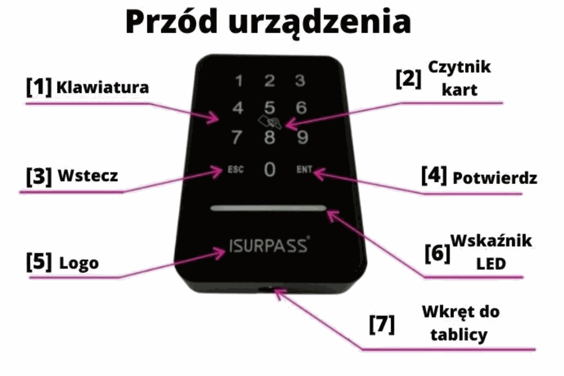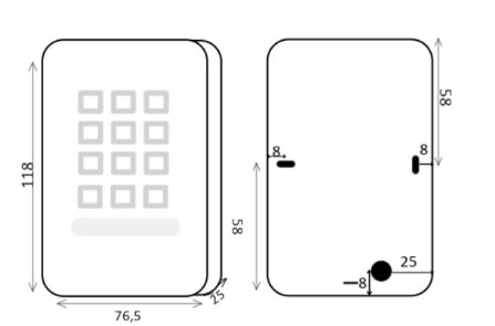 - Karta NFC/MIFARE- karta dla administratora umożliwiający nielimitowaną ilość wejść oraz zapewnia dostęp do menu administratora zamka.